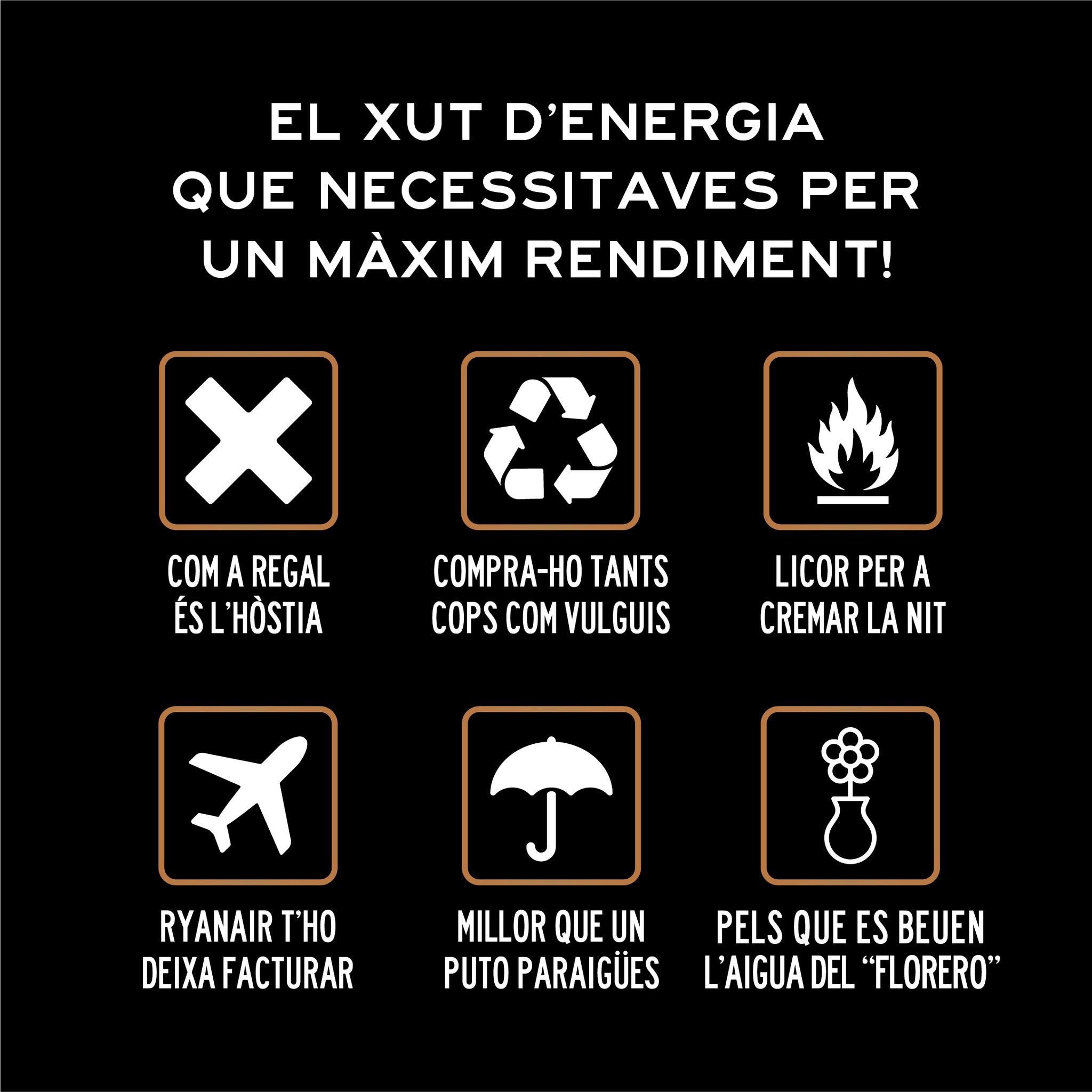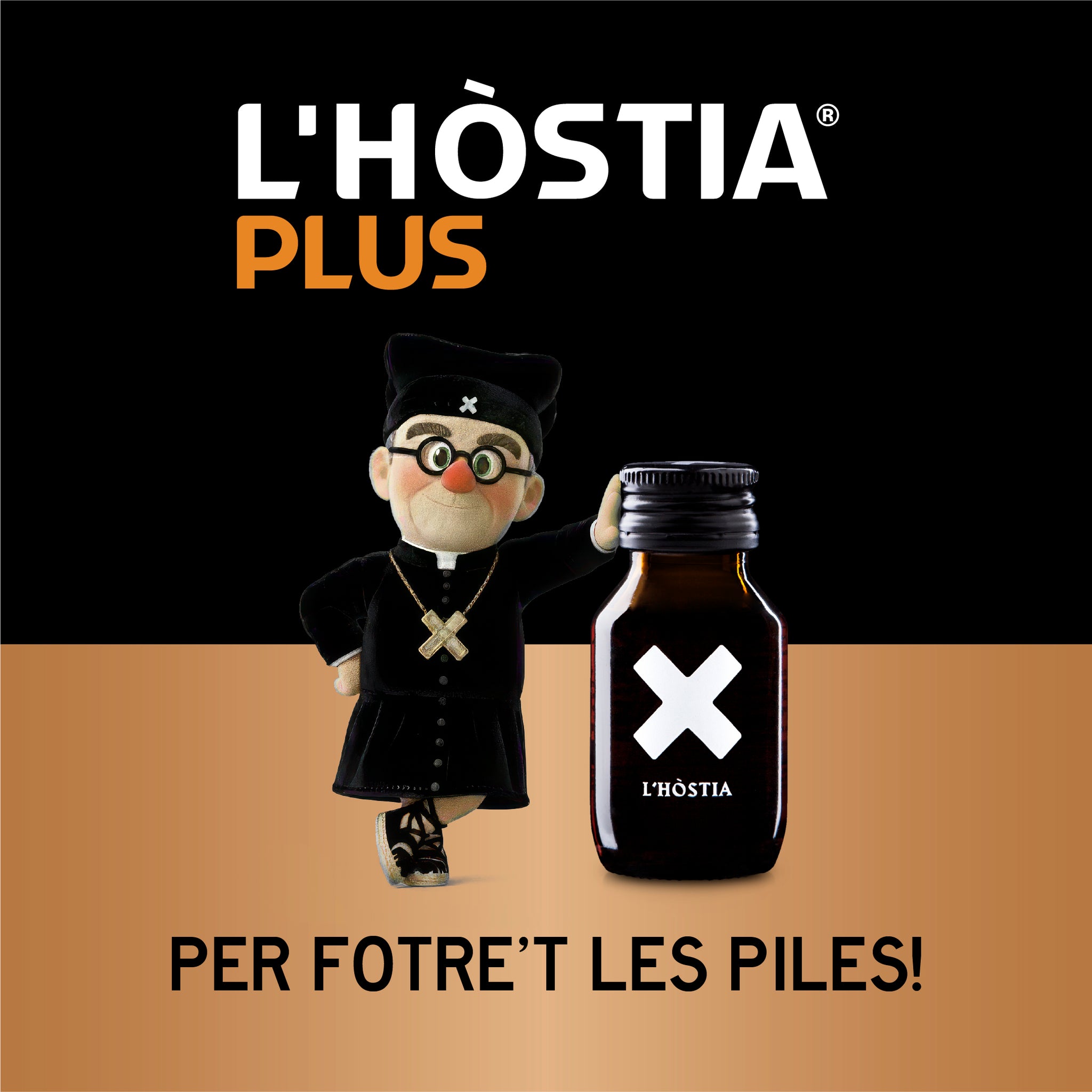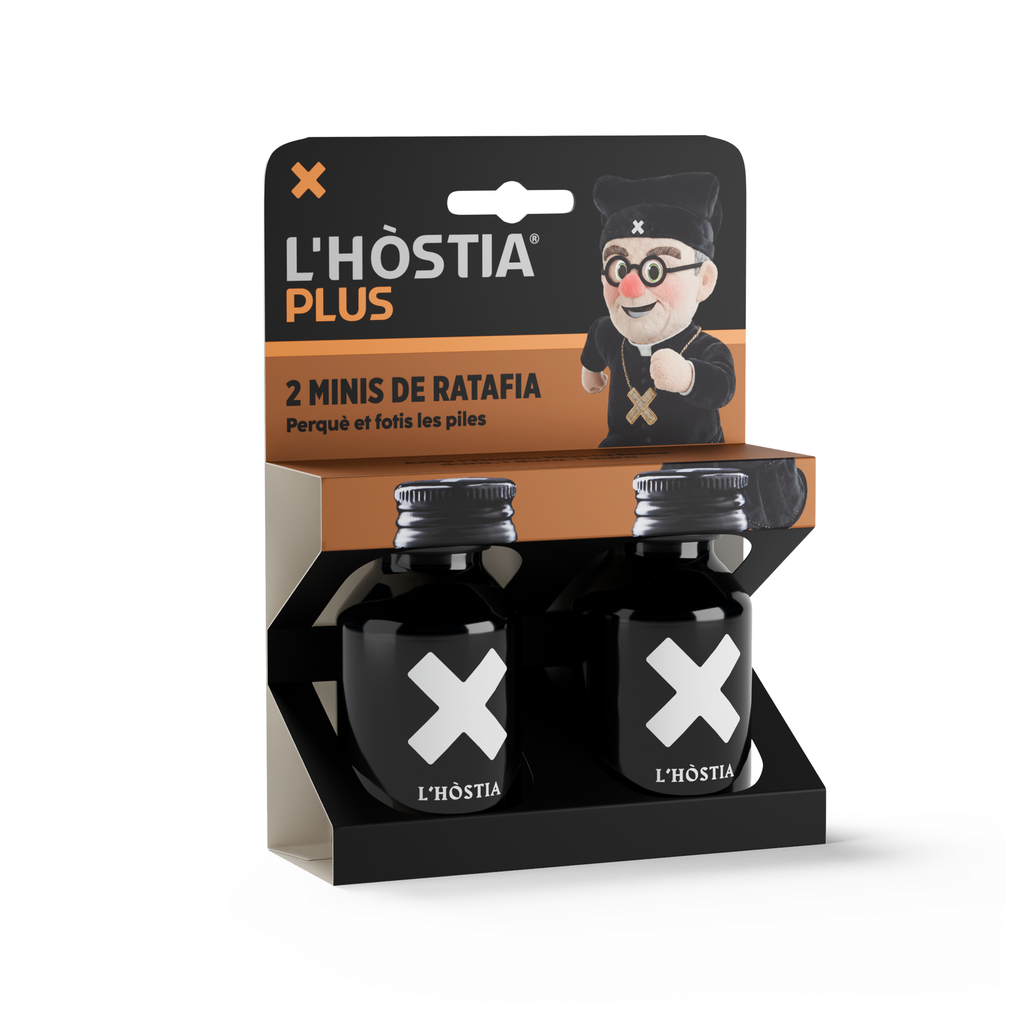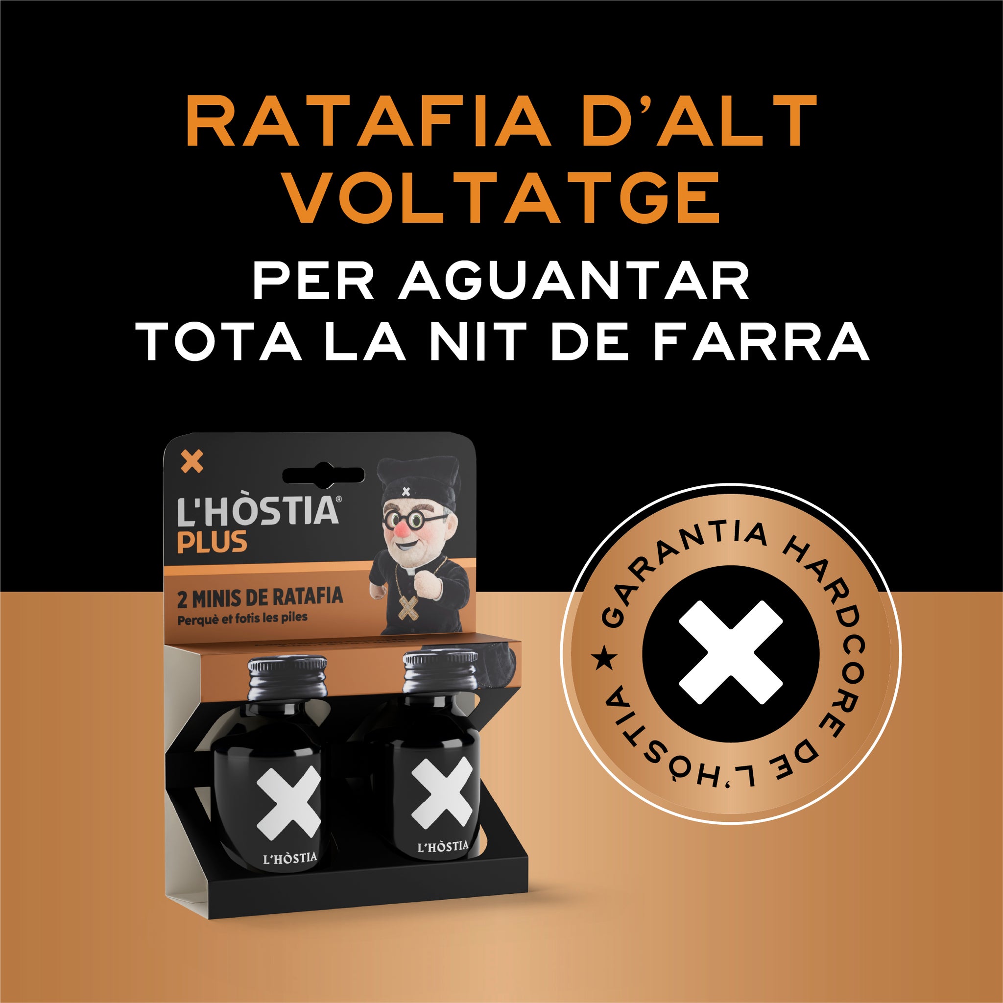 L'Hòstia Plus és el xut d'energia que necessitaves per fotre't les piles. 2 flascons de 5 cl de ratafia d'alt voltatge i la festa dura, i dura, i dura..